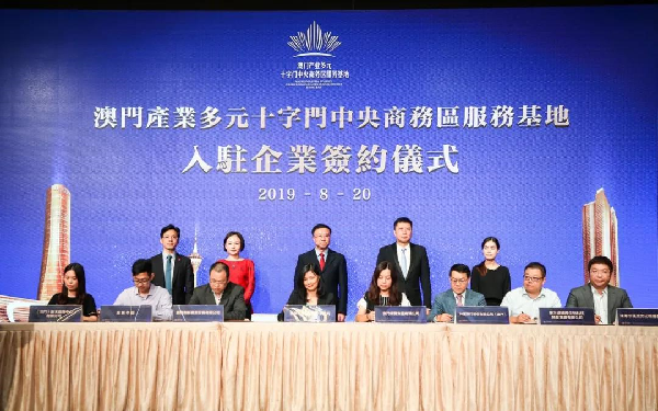2019年12月,在澳门回归祖国20周年之际,澳门产业多元十字门中央商务区服务基地正式投入运营,成功引入105家澳门企业机构,3万平方米办公空间实现100%签约,打造了国际化的一流营商服务体系,为澳门深度参与粤港澳大湾区建设,融入国家发展大局创造了广阔天地!